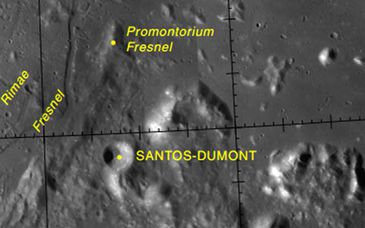 Não é exagero dizer que o inventor é reconhecido até na Lua. Em 1973, como homenagem pelo centenário de nascimento do brasileiro, a União Astronômica Internacional batizou de Santos Dumont uma cratera existente no satélite natural da Terra. Com 8,8 quilômetros de diâmetro, a cratera fica a 54 quilômetros do local de pouso da missão Apollo 15, em 1971, sendo a primeira a receber o nome de um brasileiro e a única no lado visível da Lua.