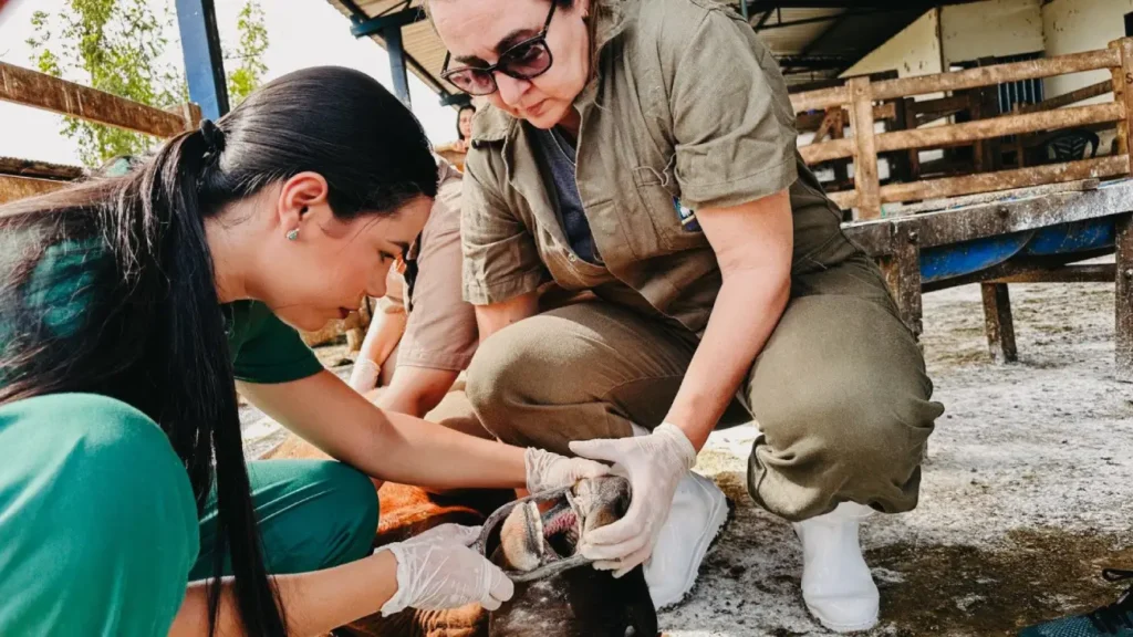 Durante as ações de vigilância, equipes de médicos-veterinários realizam inspeções clínicas nos animais e orientam produtores sobre boas práticas de manejo e a importância da notificação de doenças.
