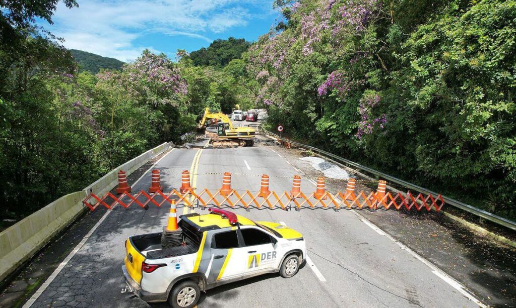 Mogi-Bertioga (SP-098) – segue interditada, em razão do rompimento de tubulação na altura do km 82, em Biritiba Mirim. Também há interdição parcial nos km 90 e 91, devido à queda de barreira; e no Km 87, devido a uma erosão. Nesta terça-feira, uma equipe do DER iniciou os serviços de recuperação no local.
