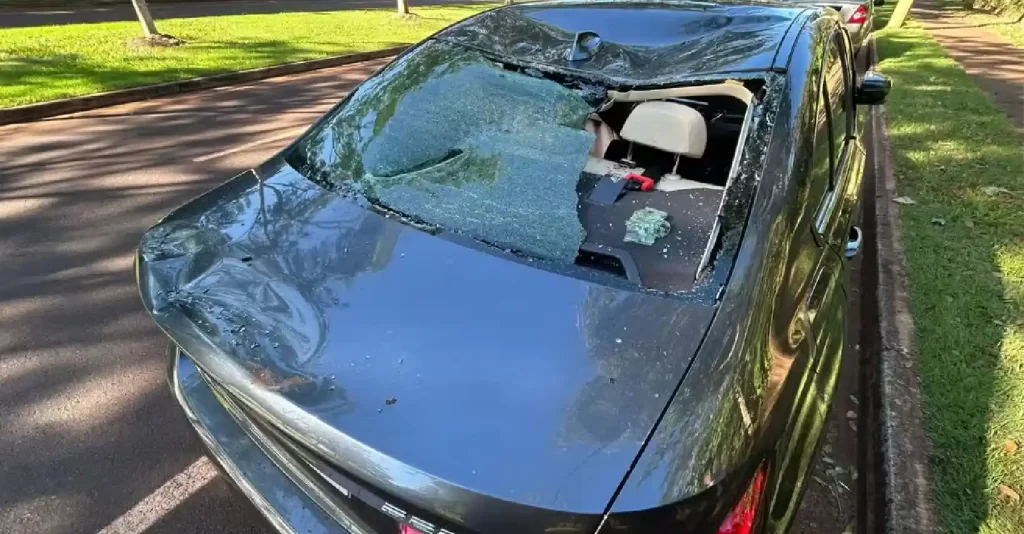 Dentro do veículo estavam a motorista Paula Zeotti e sua filha de apenas 5 anos. Em estado de choque, Paula desabafou enquanto registrava o ocorrido: “Tudo que eu precisava. Como eu vou explicar que um touro pulou no meu carro?”