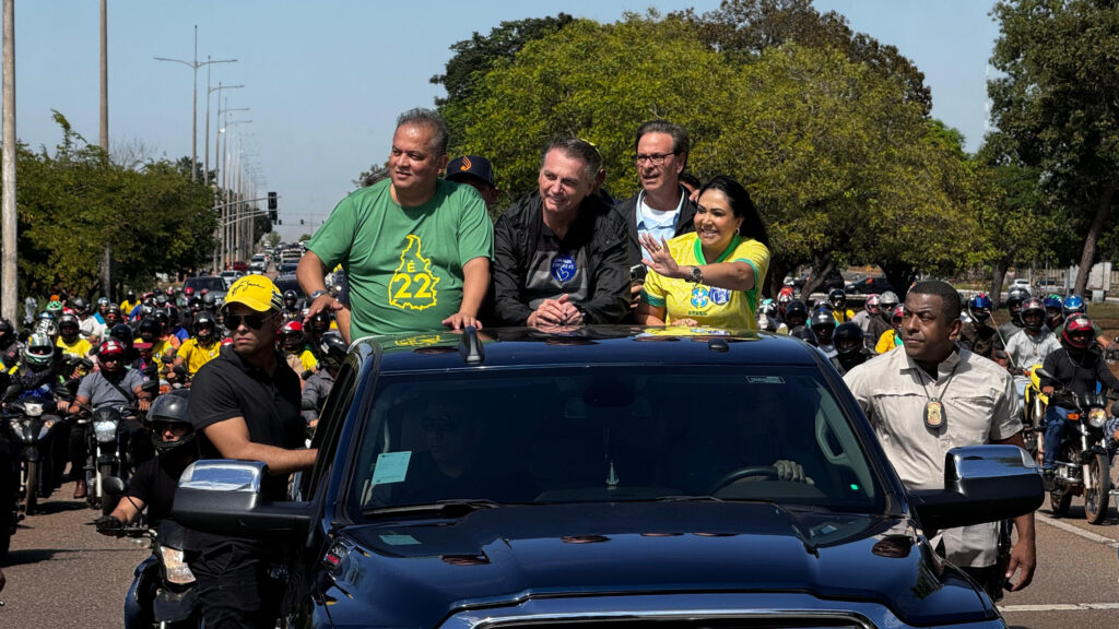 Jair Bolsonaro (PL) participou na manhã desta sexta-feira (07) de uma carreata nas ruas de Palmas. O ex-presidente também participou de uma reunião com líderes estaduais do PL que teve como tema a mobilização para as eleições municipais.