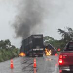 Colisão entre caminhões na TO-010 deixa um ferido e causa explosão