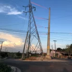 Moradores relatam medo de torre de transmissão escorada em postes: ‘Balança muito’