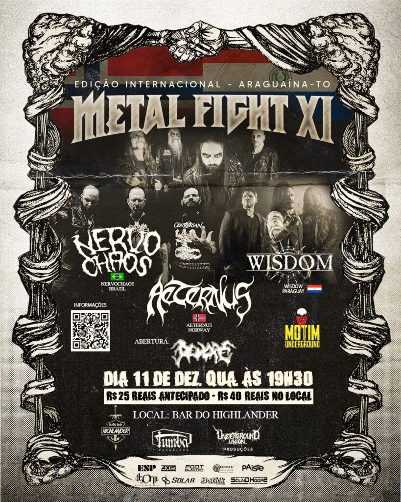 No próximo dia (11) de dezembro, Araguaína viverá uma noite histórica para os amantes do metal extremo. Pela primeira vez na história da cidade, o Bar do Highlander será palco de dois shows internacionais, em um evento que promete marcar a cena do rock e do metal na região. A 11ª edição do Metal Fight trará grandes nomes do gênero para uma noite única, com apresentações de bandas de peso tanto internacionais quanto nacionais.