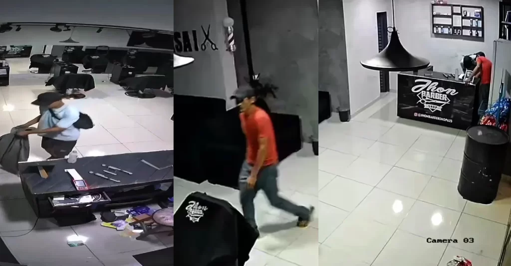 Uma barbearia localizada na Avenida Cônego João Lima, no bairro Entroncamento, em Araguaína, foi alvo de furto na madrugada desta quarta-feira (2). Dois homens invadiram o estabelecimento por volta das 2h da manhã e foram flagrados pelas câmeras de segurança revirando o local e levando diversos objetos de valor.