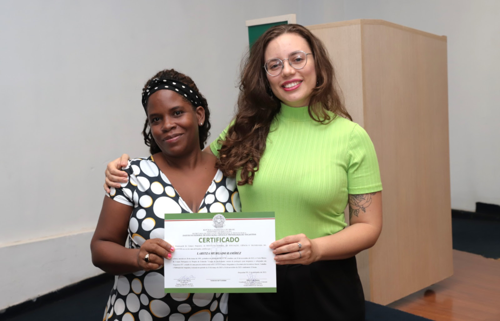 A cerimônia de conclusão do curso e a entrega de certificados foram realizadas na noite da última segunda-feira, 18, no auditório do IFTO, com a presença de servidores municipais, do IFTO e familiares dos estudantes. Representando a turma, a imigrante Jorgelys Nazareth foi a oradora e ressaltou o significado desse processo de aprendizado. “Estamos aprendendo um pouco o idioma do país e cidade que nos acolheram”.