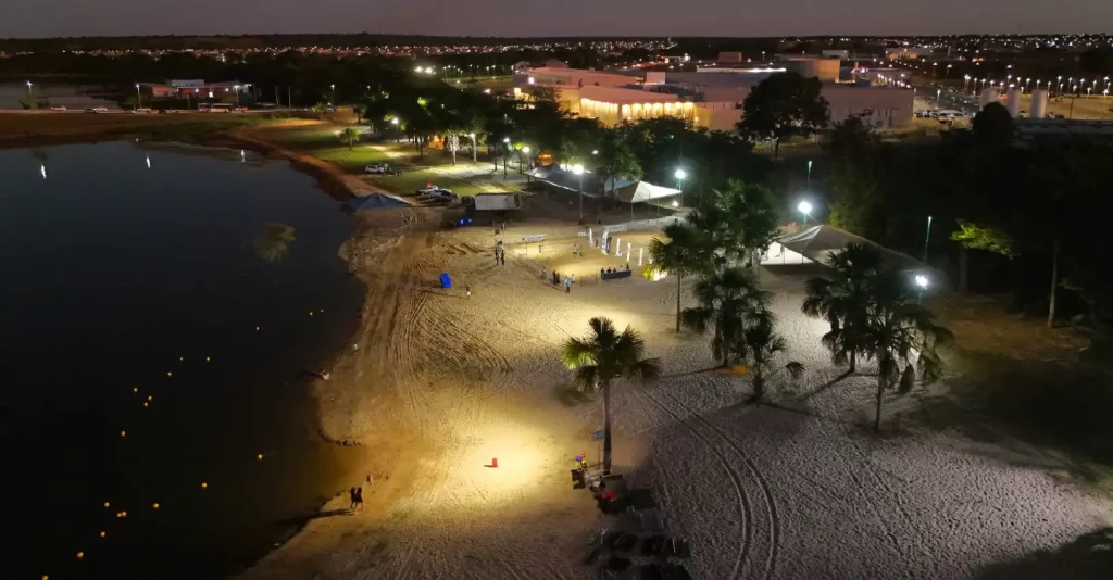 A Praia da Via Lago ganhou vida na noite desta segunda-feira (7) com a abertura oficial do Festival de Verão Araguaína 2025. As primeiras disputas dos torneios de Vôlei de Praia e Futevôlei atraíram dezenas de pessoas, dando o pontapé inicial a um mês inteiro de atividades esportivas, culturais e musicais que prometem agitar as férias na cidade.