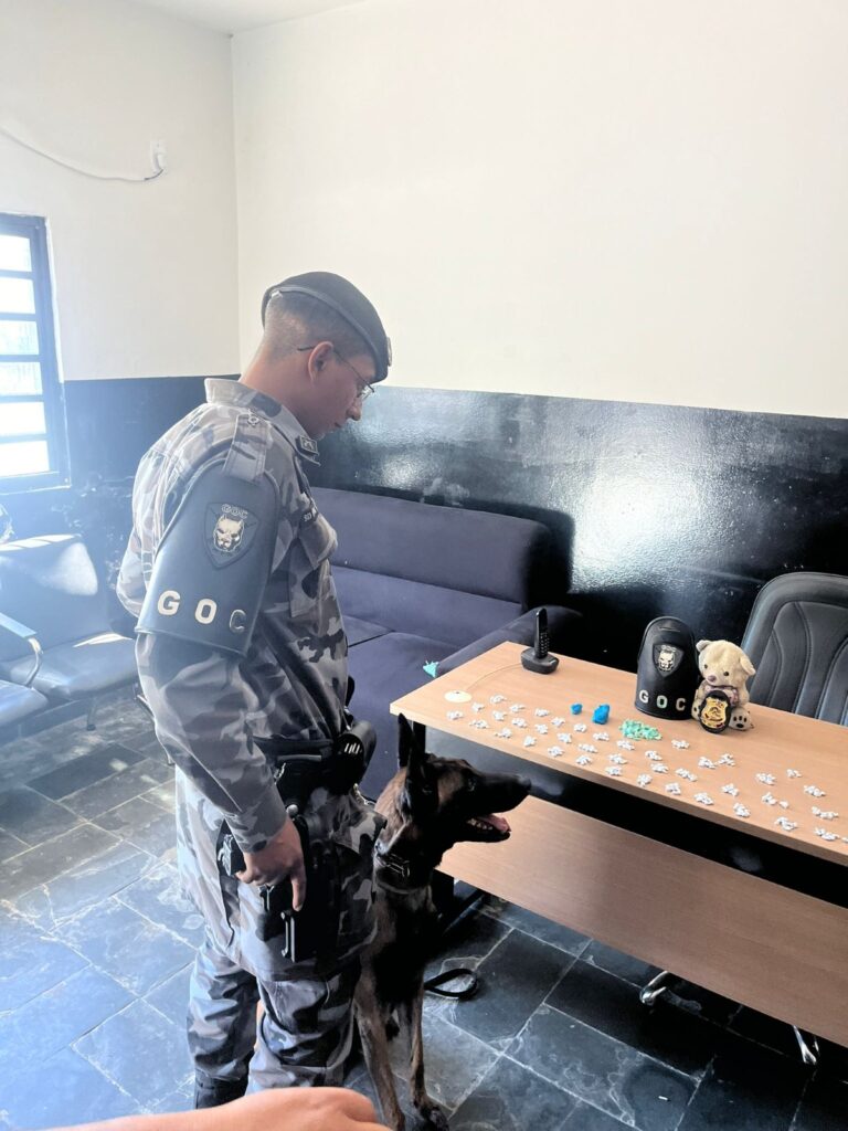 O material apreendido foi localizado embaixo de um dos assentos do veículo, no interior de um urso de pelúcia, sendo 385 unidades de substâncias análogas ao crack, 21 unidades de substância análoga à cocaína e 2 unidades de substâncias análogas à maconha.