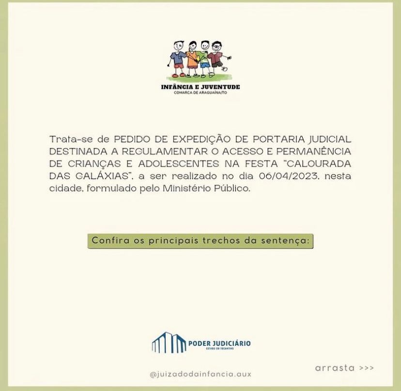 O juiz Deusamar Alves Bezerra explicou que os artigos 70 e 71 do Estatuto da Criança e do Adolescente afirmam que “é dever de todos prevenir a ocorrência de ameaça ou violação dos direitos da criança e do adolescente”. O magistrado também citou a Portaria 001/2017, que regulamenta a entrada e participação de crianças e adolescentes em eventos e locais públicos.