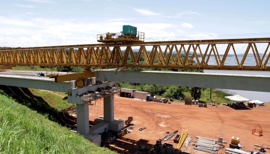 O primeiro vão já conta com as cinco vigas instaladas e, nesta semana, estão sendo lançadas as cinco do segundo vão. Na próxima semana, os dois primeiros vãos receberão laje e sobre laje, bem como a construção da cabeceira do aterro para que a carreta carregada com as vigas do terceiro, quarto e quinto vãos possa passar por sobre o pavimento do primeiro e do segundo.