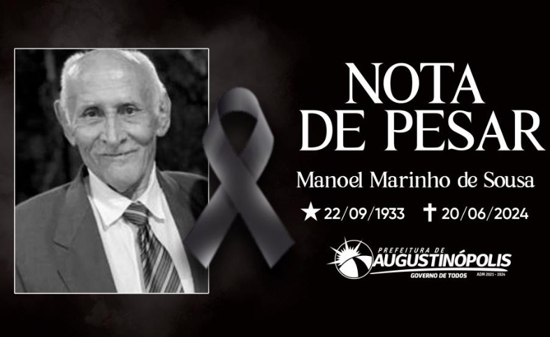 Manoel Marinho de Sousa Brito, 88 anos, primeiro prefeito eleito de Augustinópolis, morreu na tarde da última quinta-feira (20), em Palmas, onde estava internado desde o dia 29 de maio para tratamento médico.