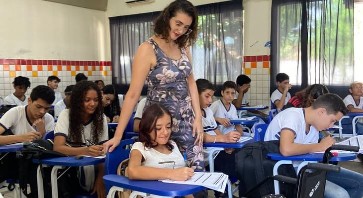 A secretária municipal da Educação, Fátima Sena esteve na manhã desta quarta-feira, 1°, nas ETIs Cora Coralina e Luiz Gonzaga para verificar o andamento da aplicação das provas e incentivar os alunos à participação, além de ouvir as demandas da gestão da escola.