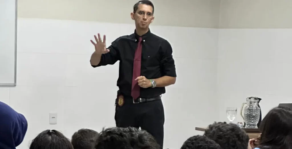 Durante as palestras, o delegado também falou sobre o papel da DPCA, explicando como são tratadas as denúncias que envolvem crianças e adolescentes. Ele incentivou os alunos a denunciar qualquer tipo de violência que presenciarem ou sofrerem, reforçando que a Polícia Civil está pronta para agir e proteger.