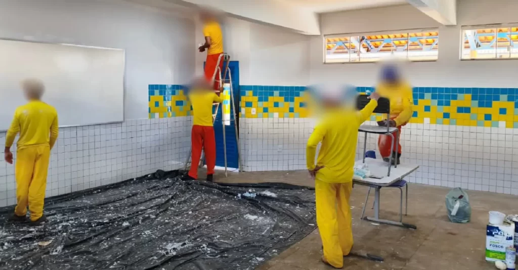 O colégio arcou apenas com os materiais utilizados, sem custos com mão de obra. Desde 2019, os reeducandos têm colaborado com a escola em diversas frentes, como implantação de horta agroecológica, roçagem e limpeza do pátio, além da recente pintura das salas.