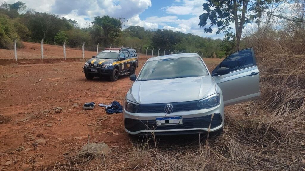 Pouco tempo depois, os policiais localizaram o veículo abandonado às margens da rodovia. Após verificação, foi constatado que o carro possuía restrição por apropriação indébita.