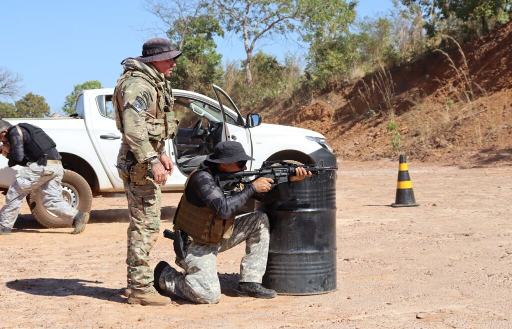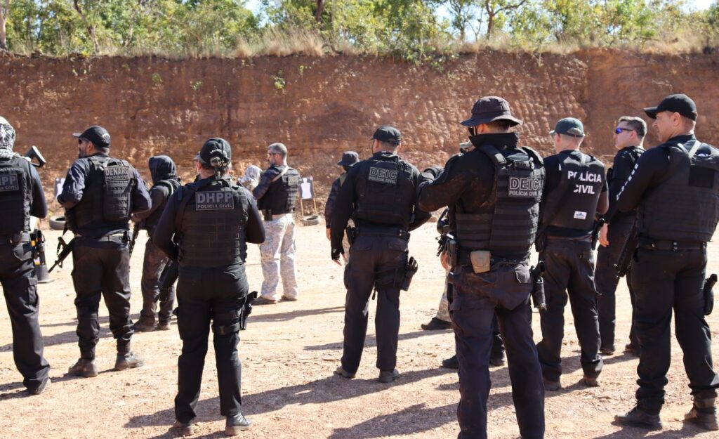 O treinamento envolve policiais das delegacias especializadas ligadas à Diretoria de Repressão à Corrupção ao Crime Organizado (Dracco), com o objetivo de capacitar os agentes de segurança para lidar com situações de alto risco e ambientes de zona rural.