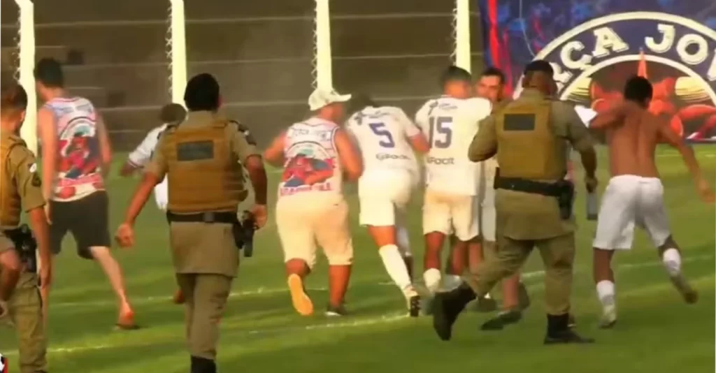 A confusão começou logo após o apito final, que confirmou o resultado. Revoltados, integrantes de uma torcida organizada do Araguaína pularam o alambrado e invadiram o gramado para cobrar os próprios jogadores. Atletas e membros da comissão técnica precisaram ser protegidos às pressas.