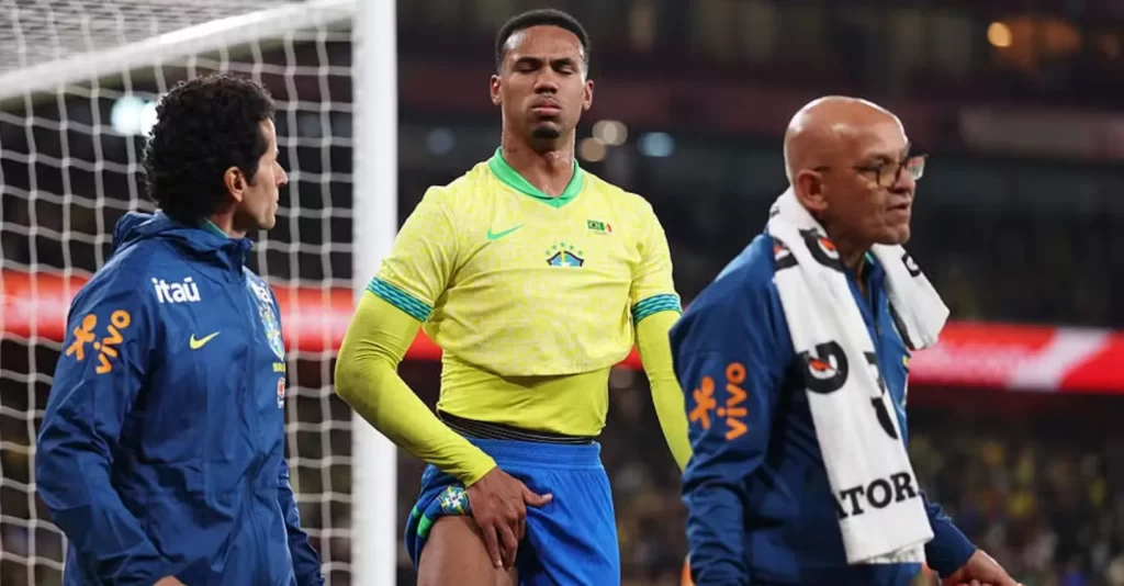 O Brasil perdeu uma peça importante na defesa. O zagueiro Gabriel Magalhães, do Arsenal, foi cortado da Seleção Brasileira após sofrer uma lesão muscular na coxa direita. A confirmação saiu neste domingo (16), pela Confederação Brasileira de Futebol (CBF).