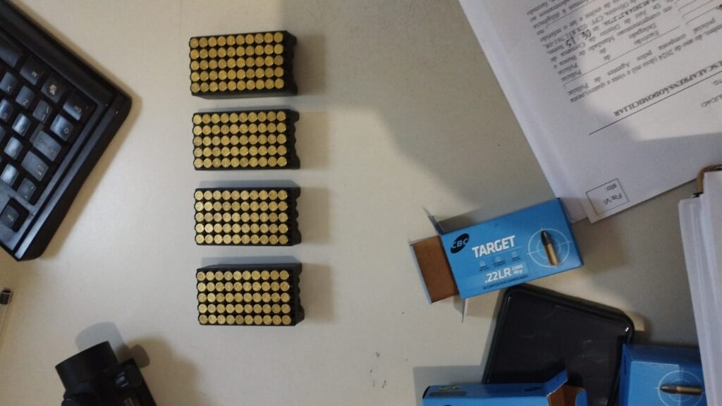 O delegado Clézio Cândido Lima Neves informou que durante o cumprimento do mandado de busca e apreensão, na residência do indivíduo, no Setor Norte, em Almas, as armas furtadas não foram encontradas. No entanto, foram apreendidos uma espingarda calibre 22, três caixas de munições e vários quilos de carne de caça de animais silvestres, prontas para o consumo. As carnes são de tatu, paca, veado e pássaros.
