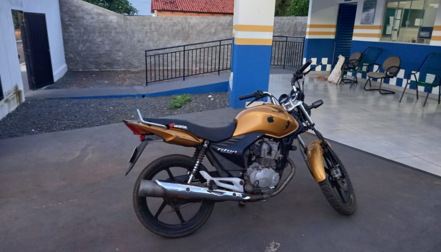 Em patrulhamento de rotina pela cidade de Wanderlândia, uma guarnição de radiopatrulha identificou uma motocicleta Honda CG 150, de cor Laranja, com placa de Tocantinópolis – TO, próximo a um bar. Durante consulta via SIAD, os policiais constataram que o veículo possui uma ocorrência de furto. O condutor informou que comprou o veículo de uma mulher na cidade de Darcinópolis pelo valor de R$ 5.500,00, há aproximadamente cinco meses.