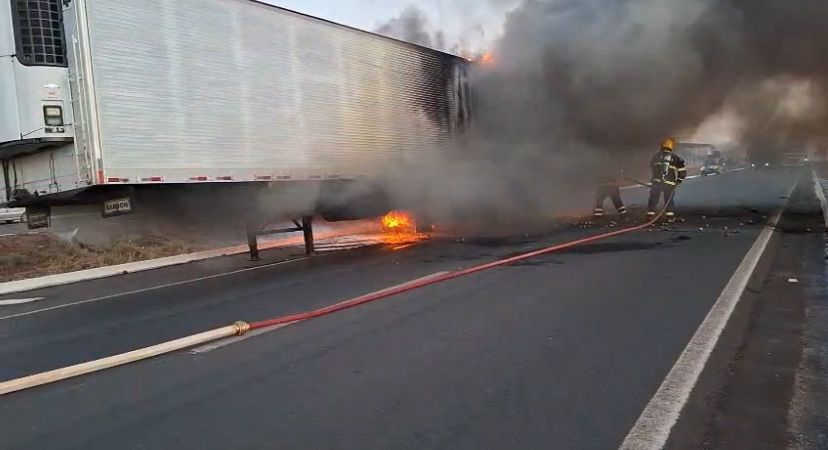 O veículo envolvido foi um caminhão trator SCANIA/R400 A6X2, de cor vermelha e placas de Francisco Beltrão (PR), acoplado a um semi-reboque Randon/SR FG, branco, também do mesmo município. Segundo informações preliminares, as chamas teriam começado em uma das rodas do semi-reboque.