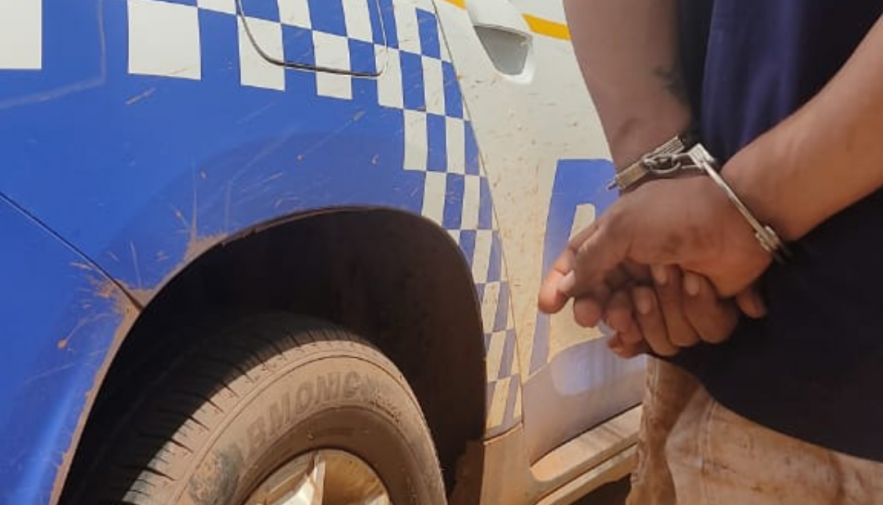 Durante patrulhamento, equipe policial do 5º Batalhão da Polícia Militar e da Guarda Municipal foram acionados por terceiros, informando-os de que no Bar Encontro dos Amigos, uma mulher estava sendo agredida por um homem. Ao avistar a guarnição, o homem tentou empreender fuga, correndo e segurando algo na cintura, mas foi impedido pelas equipes da PM e GCM que o deteram.
