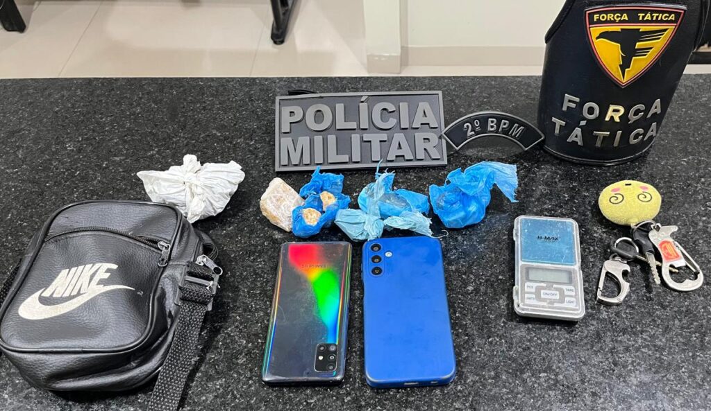 No local, os militares encontraram a mochila da vítima contendo roupas e documentos, além de uma motocicleta Honda CG 160 Start, utilizada no assalto. Também foram localizados entorpecentes — 48,2g de crack, 71,9g de cocaína e 56,2g de maconha —, uma balança de precisão, uma bolsa preta e outro aparelho celular.