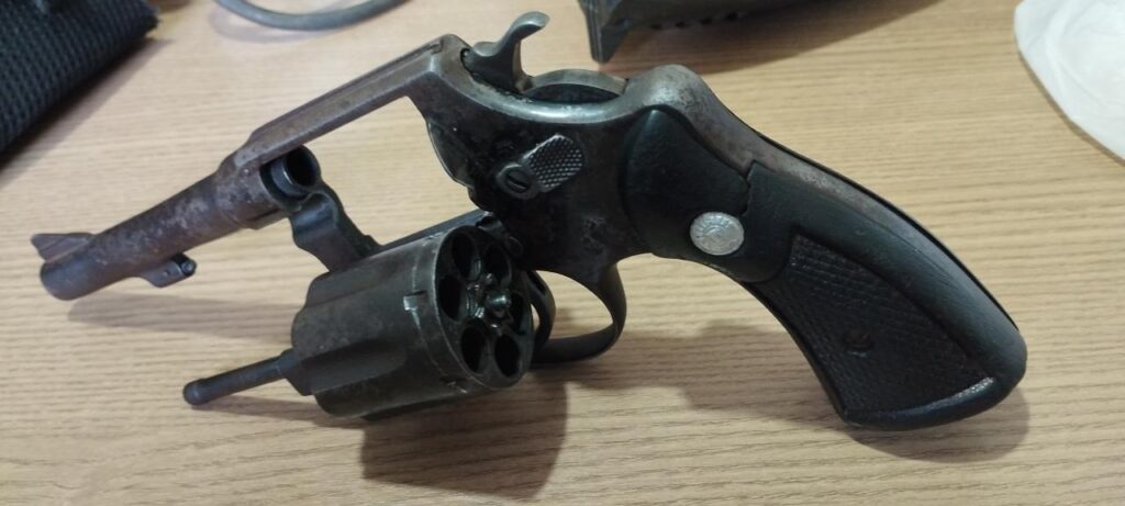 Durante a averiguação no imóvel, os policiais encontraram um revólver calibre .38 da marca Taurus, carregado com seis munições, sendo uma já deflagrada. No mesmo cômodo onde estava a arma, havia também 94 capas de celular, dois aparelhos telefônicos, ferramentas como furadeira e soprador térmico, além de diversas embalagens plásticas geralmente usadas no preparo e comercialização de drogas.