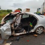 Mulher fica presa às ferragens de carro após colisão com carreta