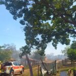 Bombeiros controlam incêndio em vegetação e evitam que chamas atinjam casas em área residencial