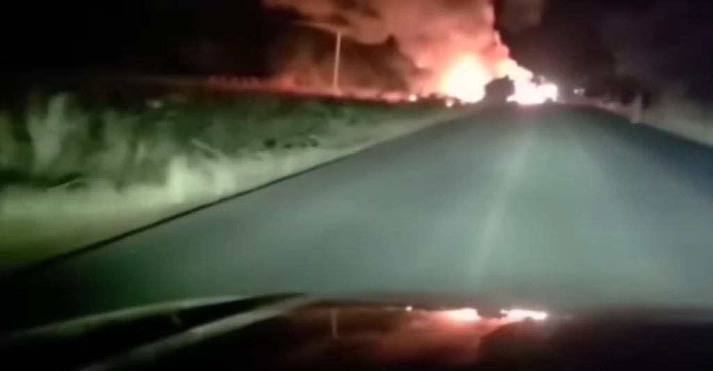 De acordo com a Polícia Militar (PM), o acidente ocorreu após um caminhão-carreta estacionar no acostamento da rodovia para trocar pneus estourados. Outro caminhão, que seguia no mesmo sentido, não conseguiu desviar e atingiu a traseira do veículo parado. Em seguida, um automóvel de passeio colidiu contra os caminhões, agravando a situação e gerando as chamas.