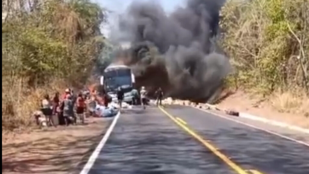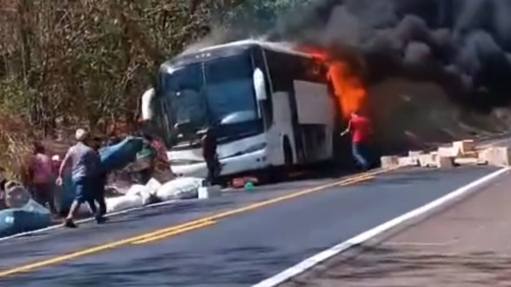 Na manhã desta sexta-feira (20), um ônibus de turismo foi completamente consumido por um incêndio na BR-153, no trecho entre as cidades de Pugmil e Paraíso do Tocantins. O veículo, que estava a caminho do Maranhão, teve que ser evacuado rapidamente após as chamas se iniciarem na parte traseira.