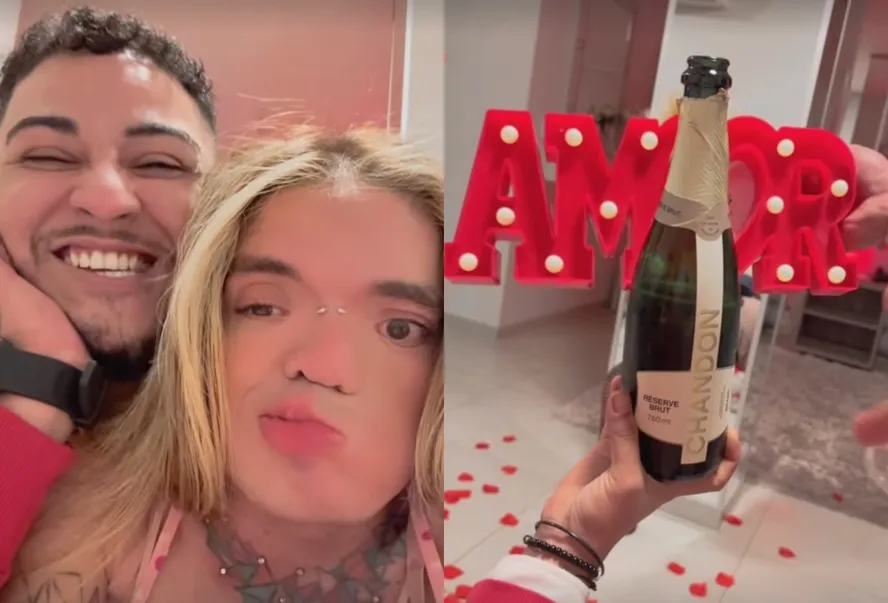 Nas redes sociais, a influencer mostrou os preparativos do pedido, que foi feito em um hotel de Palmas. Lendrinha arrumou todo o espaço antes do namorado chegar, colocando um letreiro escrito ‘amor’, rosas sobe a cama e vela.