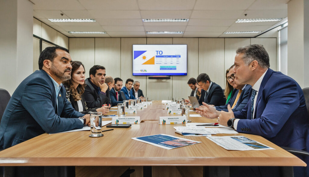 Cumprindo agenda no Tocantins, em encontro articulado pela senadora Professora Dorinha, o ministro dos Transportes, Renan Filho, se reuniu com o governador Wanderlei Barbosa; o deputado Ricardo Ayres e o secretário de Representação, Carlos Manzini, para avançar em projetos estratégicos voltados ao desenvolvimento do Tocantins.