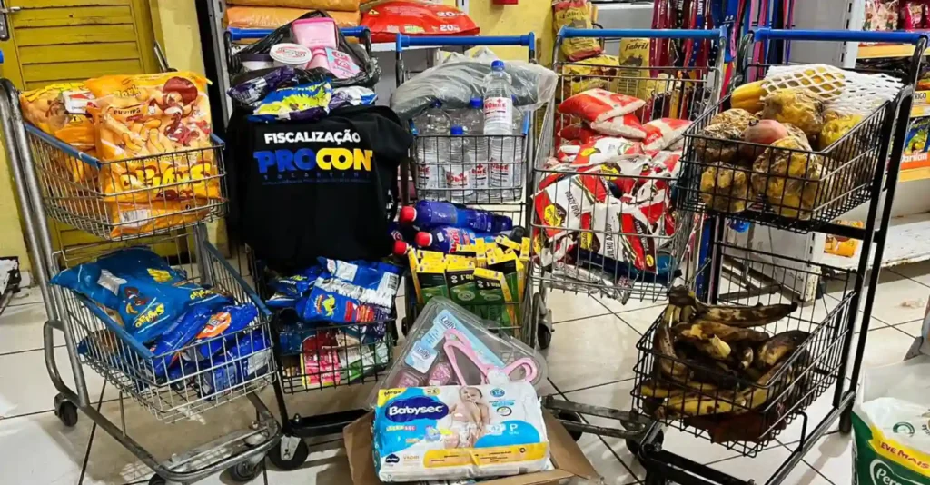 Entre as principais irregularidades encontradas estão a venda de produtos vencidos, itens sem informações de validade e fabricação, mercadorias avariadas e produtos sem rotulagem em português com dados obrigatórios, como composição, origem e preço. Também foram identificados produtos proibidos para comercialização direta ao consumidor.