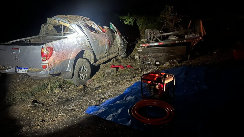 Uma mulher de 39 anos, identificada como Marilene dos Santos Leite, morreu na noite do último sábado, (14), após a caminhonete em que ela estava colidir com uma vaca e sair da pista, próximo ao município de Piraquê. Outras duas pessoas que estavam no veículo tiveram ferimentos e foram levadas para o hospital.