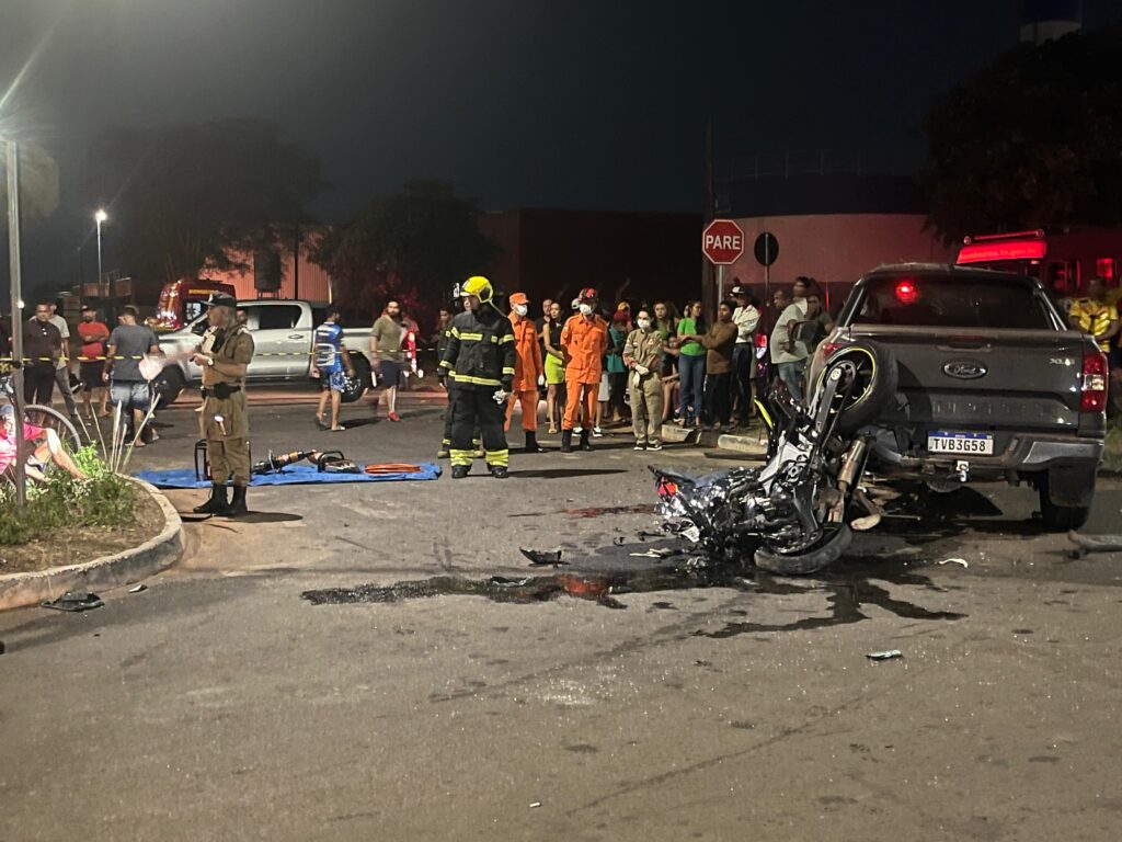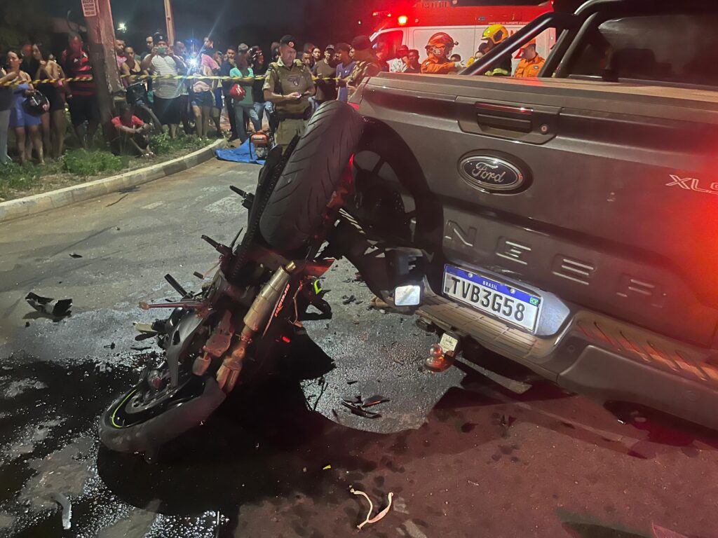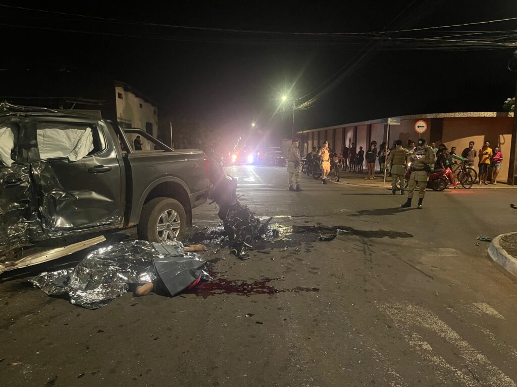 Uma batida violenta entre uma caminhonete e uma motocicleta de alta cilindrada matou três pessoas e deixou uma ferida, na noite deste sábado (1º), em Araguaína. O acidente aconteceu por volta das 18h40, na esquina das ruas das Malvas e Hortelã, na divisa dos setores Camargo e Tocantins.