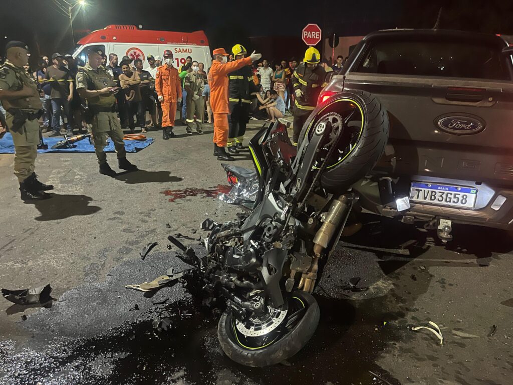 De acordo com informações da Polícia Militar, testemunhas relataram que a motocicleta trafegava em alta velocidade quando atingiu a lateral da caminhonete, que cruzava a via. O impacto foi tão forte que o veículo chegou a levantar as duas rodas do chão. Um vídeo gravado por moradores mostra o momento exato da colisão.