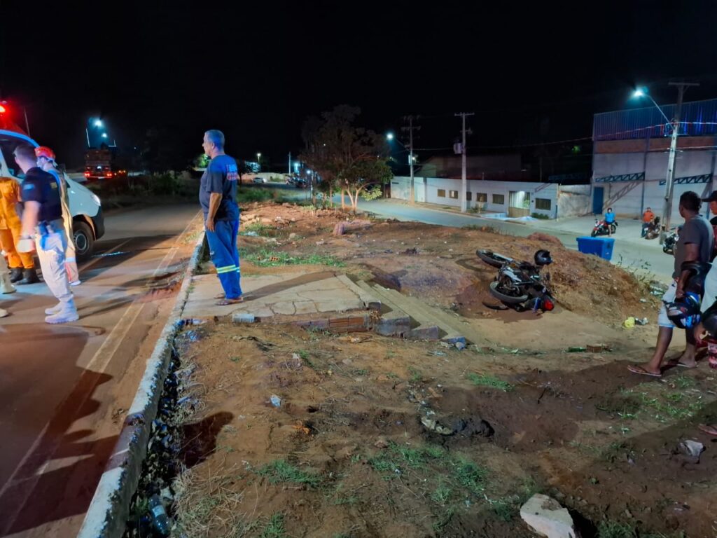 Na noite deste domingo (28), um motociclista de 32 anos ficou ferido após um acidente na BR-153, próximo ao setor Monte Sinai, em Araguaína. O homem, identificado pelas iniciais E. C. S. R., conduzia uma Honda CG 160 Fan preta quando perdeu o controle do veículo ao passar por um quebra-molas, saiu da pista e colidiu contra uma placa de sinalização.