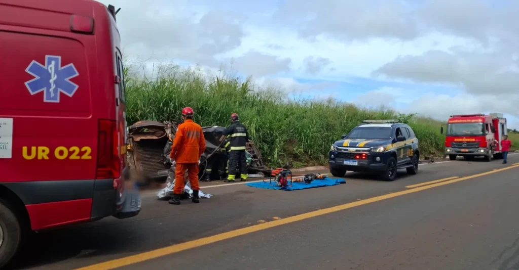 Para retirar as vítimas, os bombeiros precisaram usar equipamentos hidráulicos de desencarceramento. A caminhonete ficou completamente destruída, e os corpos estavam presos às ferragens, exigindo um trabalho técnico e delicado da equipe de resgate.